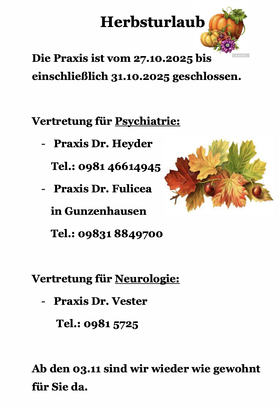 Liebe Patienten, sehr verehrte Besucher!